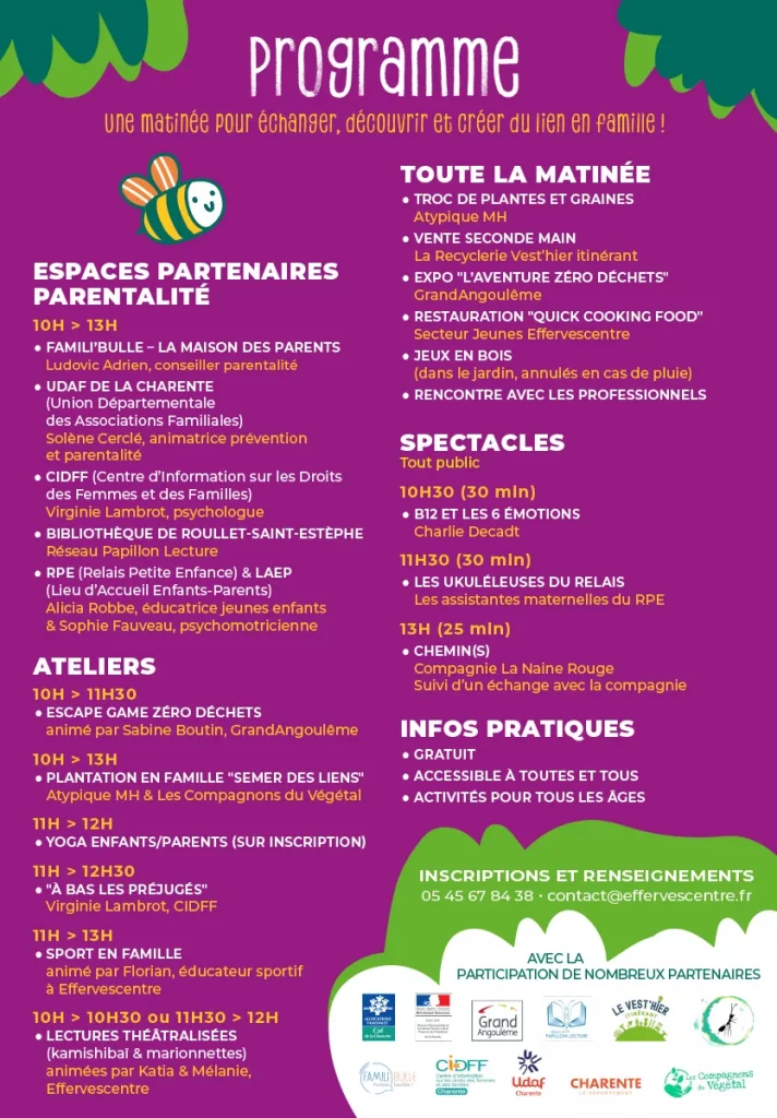 Inscriptions et renseignements : 05 45 67 84 38 | contact@effervescentre.frVenez rire, jouer, apprendre et partager un moment magique en famille !