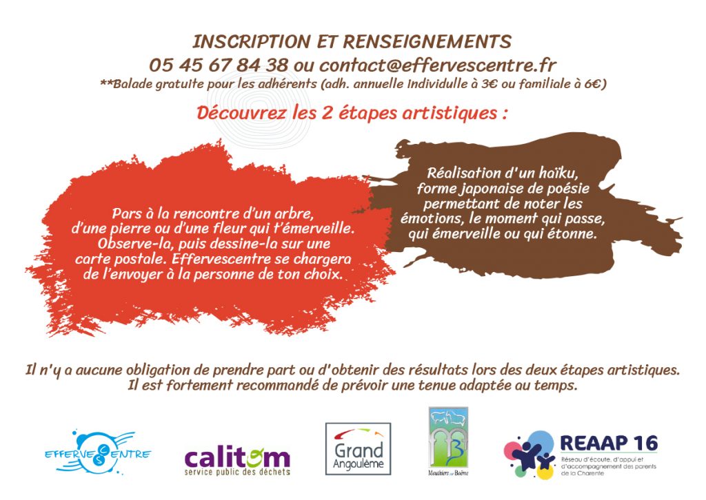 Pars avec nous à la découverte de la nature, le temps d’une balade ponctuée de créations artistiques (dessin, carte postale, haïku…) ouverte aux adultes et aux familles.