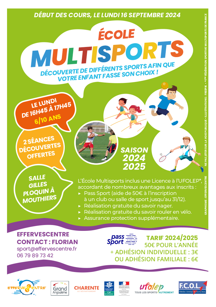 Associé à l’UFOLEP, l’école Multisports est un lieu de découverte et d’initiation sportive, pour permettre aux enfants de s’épanouir, développer leurs capacités et d’essayer différents